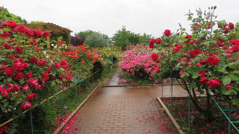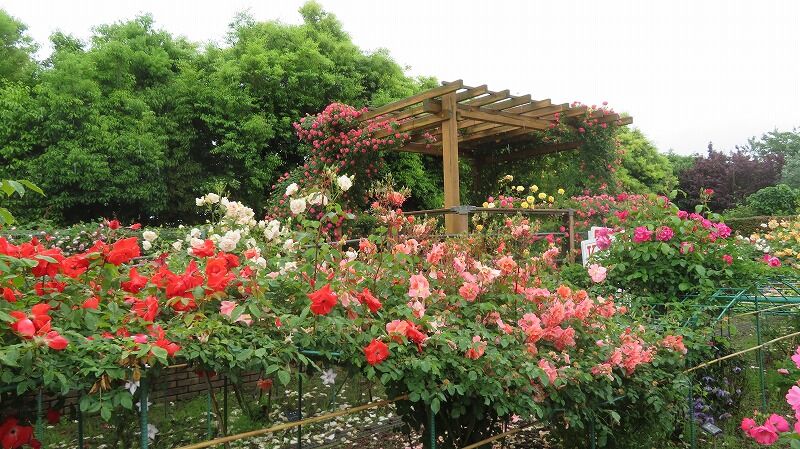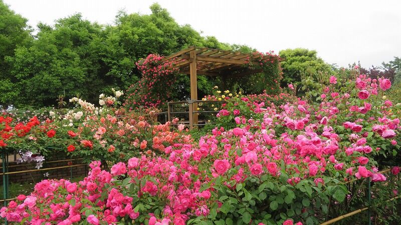 神奈川県立 花と緑のふれあいセンター 花菜ガーデン神奈川県の中央エリアに位置する平塚市には「花菜ガーデン」と呼ばれる神奈川県が運営するフラワーパークがあります。モダン・ローズ端整で洗練された印象を与える、近代のバラを展示しています。オールド・ローズに比べて花色が多く、四季咲き性(春と秋)です。クライミングとシュラブ・ローズ一度に多数の花をつけるツルバラを湘南の海をイメージした、横に大きく波打つ形のつる棚に展示しています。