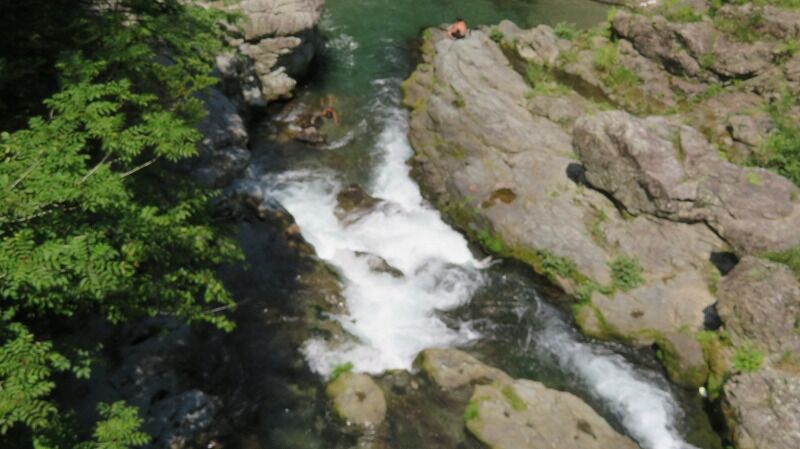 石舟橋から秋川に飛び込む動画、