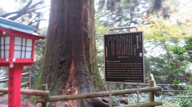 東京都指定天然記念物で最大といわれる「タラヨウ」の木があります。