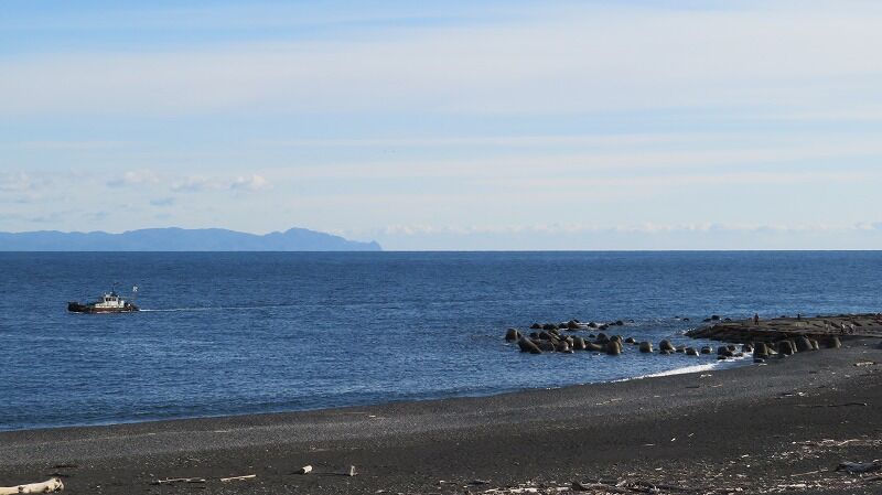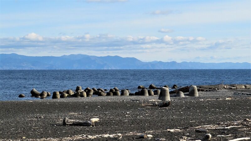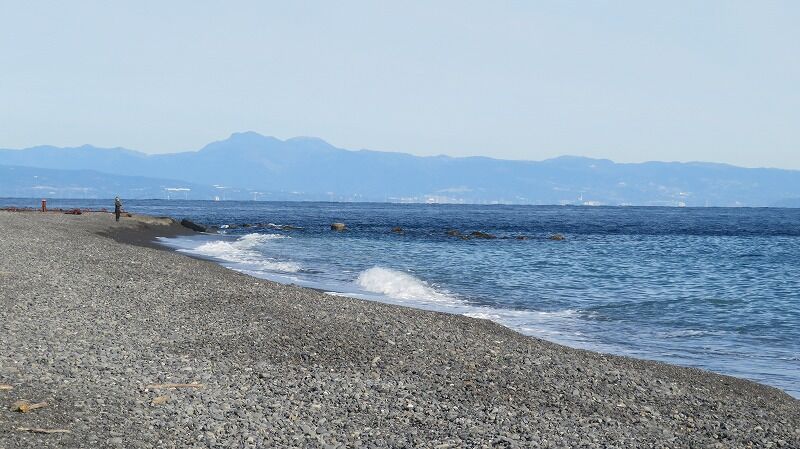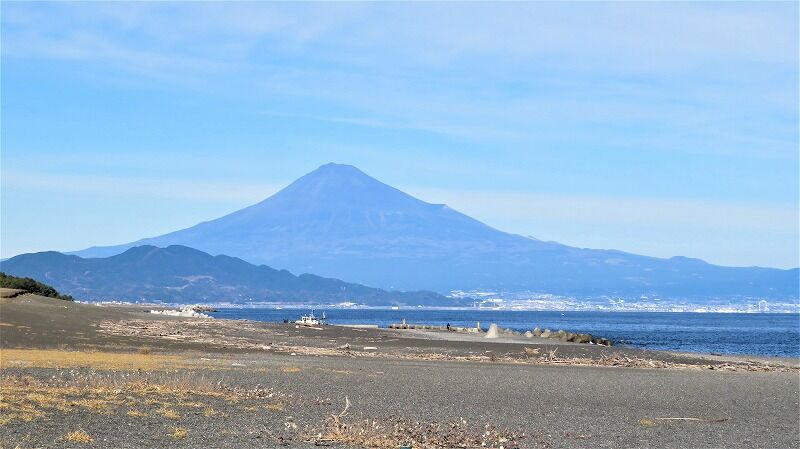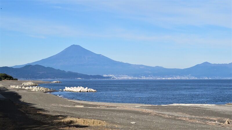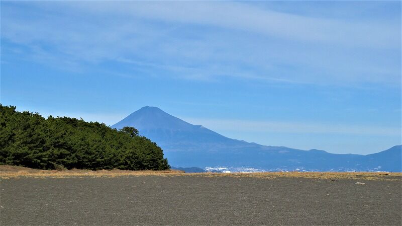 砂浜に出ると富士山が綺麗