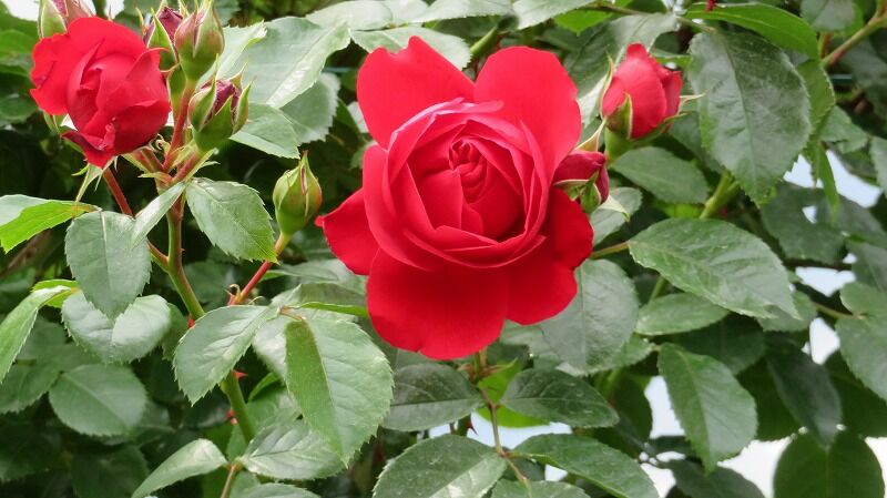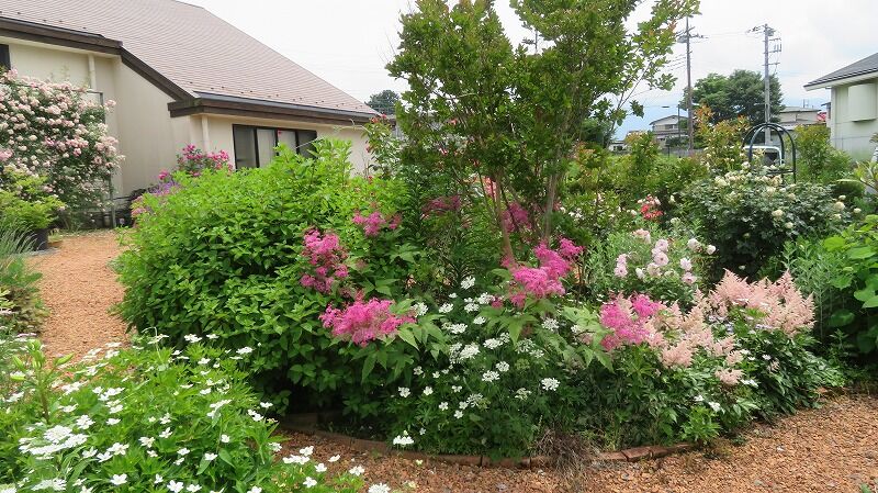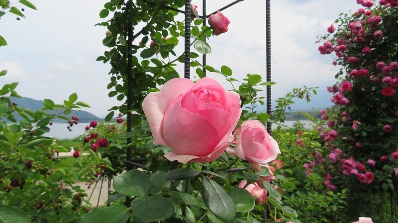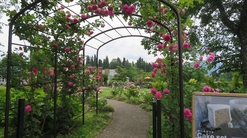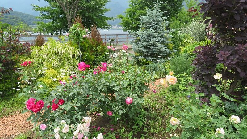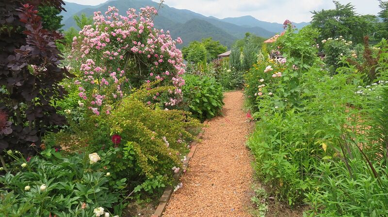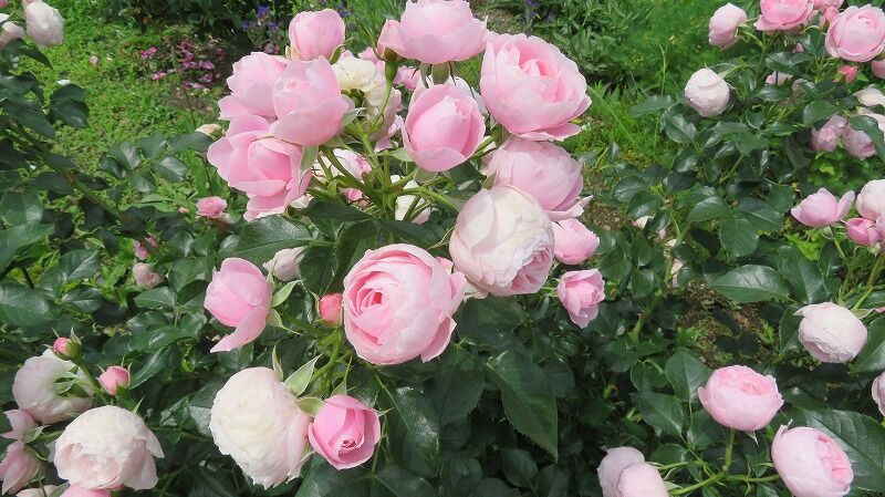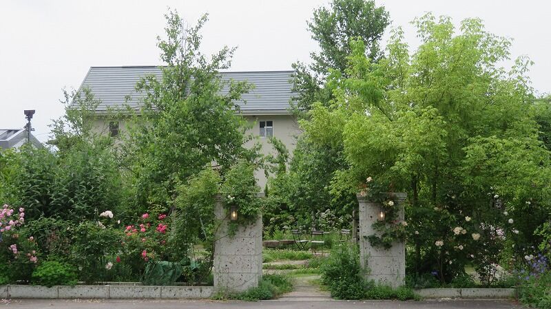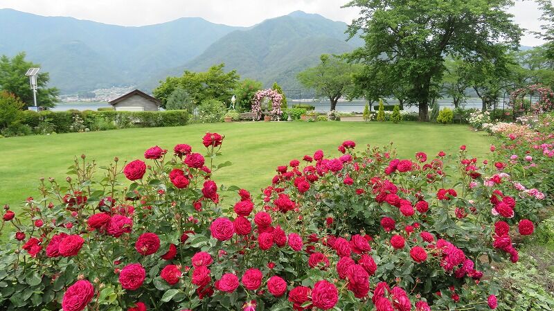 バラと芝生がきれいです。
