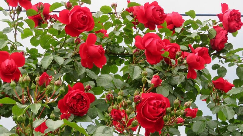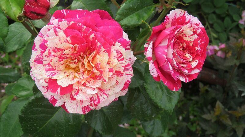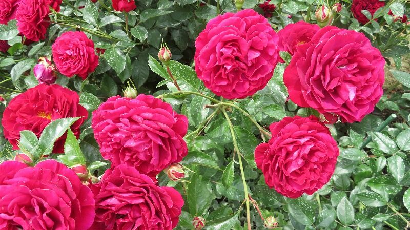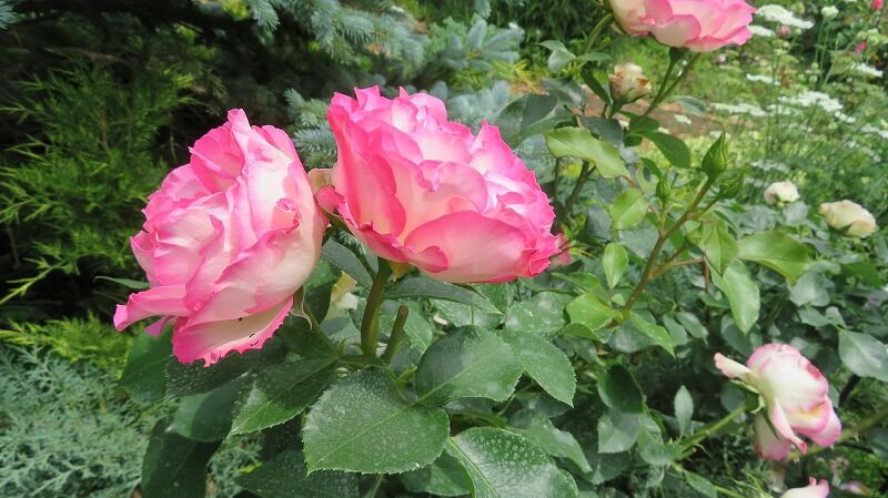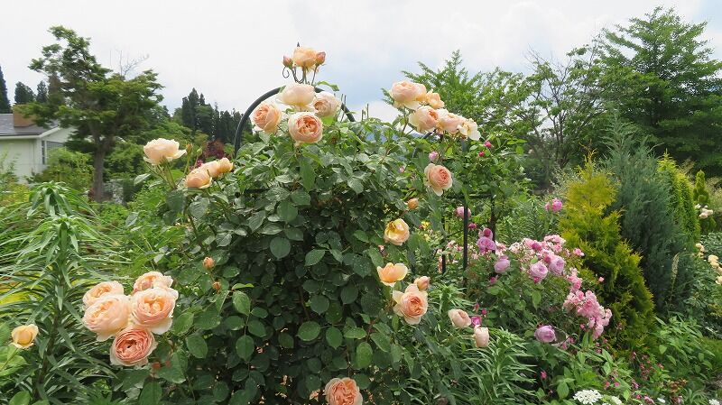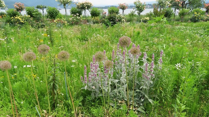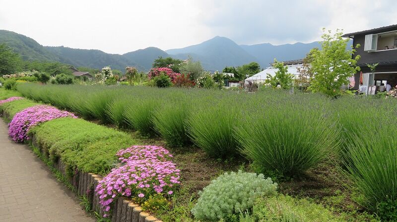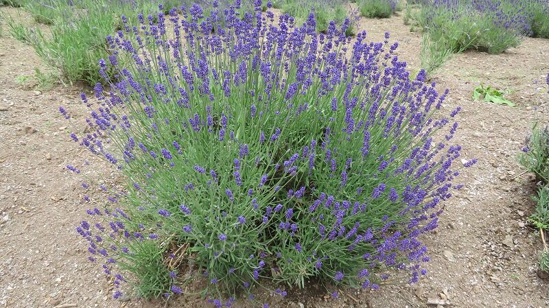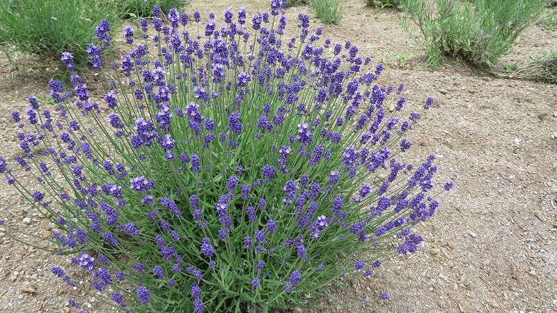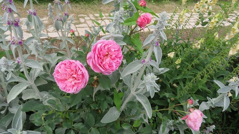 ラベンダーはまだ蕾、バラは見事に満開に咲き誇っています。