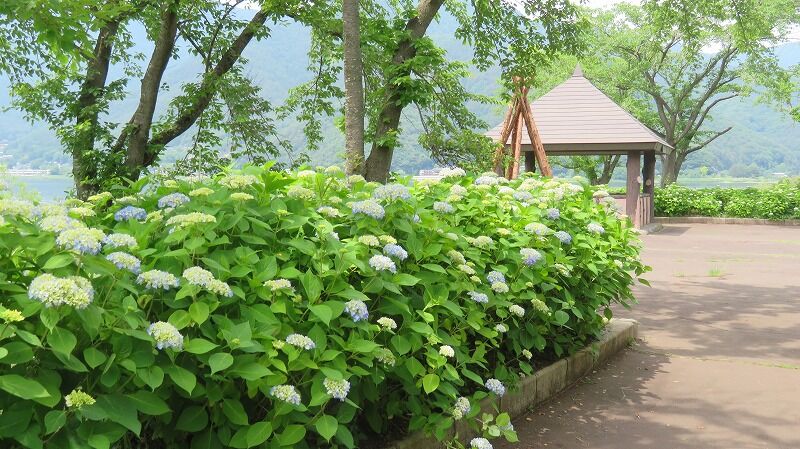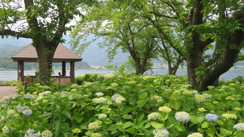 山梨県富士河口湖町小立の「八木崎公園」は河口湖南岸に位置し、