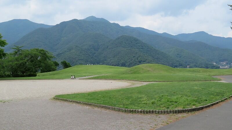 約1.5ヘクタールの敷地に芝生が敷かれ、園内の3カ所を高く盛り