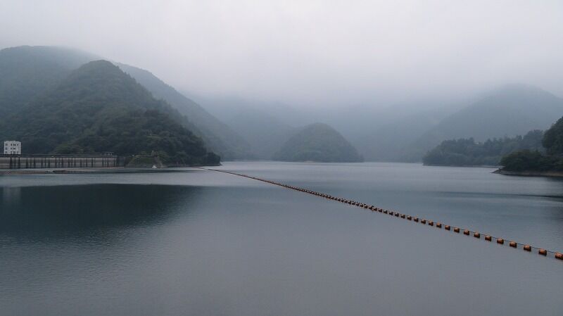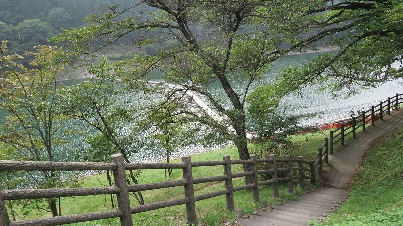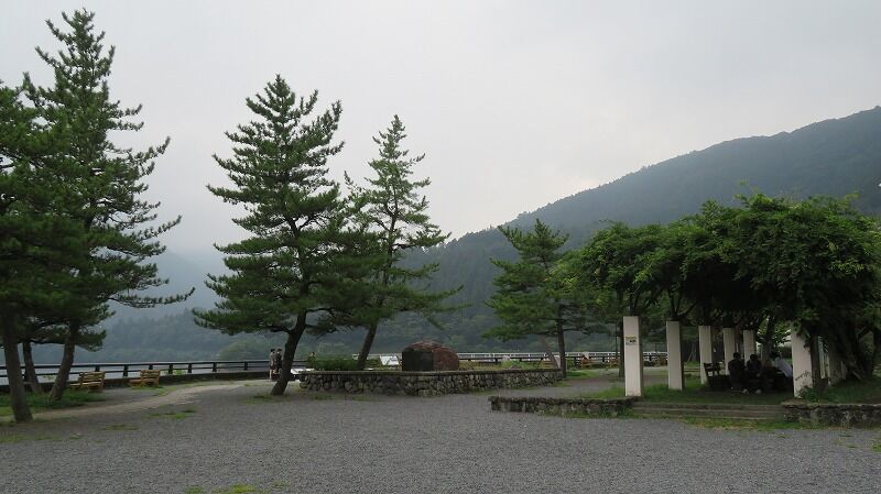 対岸の橋の上湖面を渡る風が何とも涼しい・・・