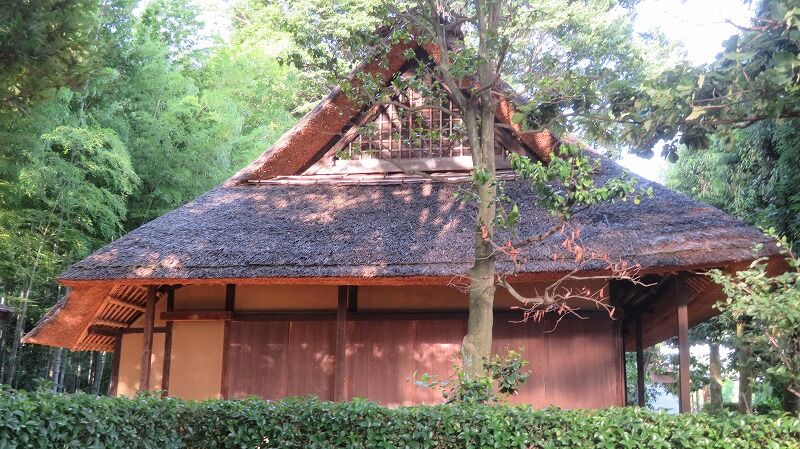 推定される典型的な茅葺き、入母屋造りの家屋です。