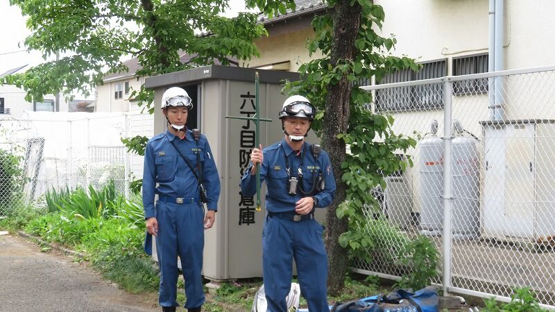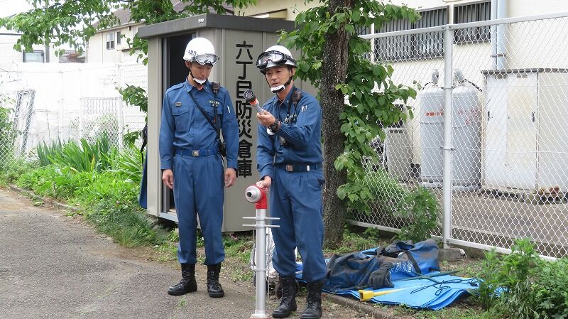 立川消防署員の指導によるスタンドパイプ