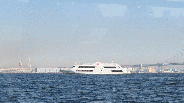 マリーンルージュ・大さん橋ふ頭・インターコンチネンタルホテルとランドマークタワー・横浜ベイブリッジ